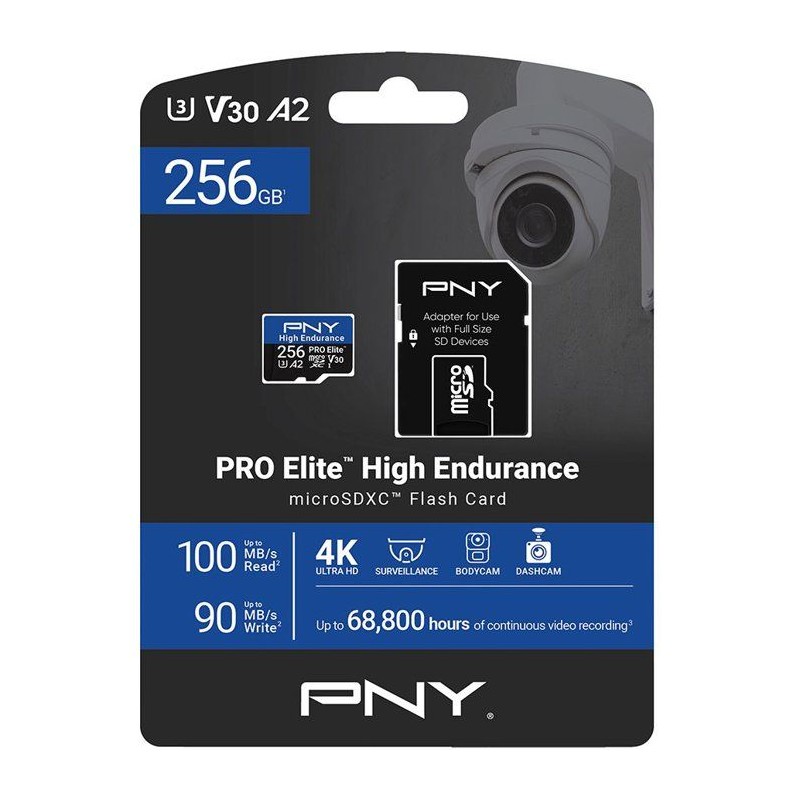 PNY Pro Elite™ High Endurance - Carte mémoire microSDXC - 256 Go - UHS-I C10 U3 V30 A2 - 100/90 Mo/s