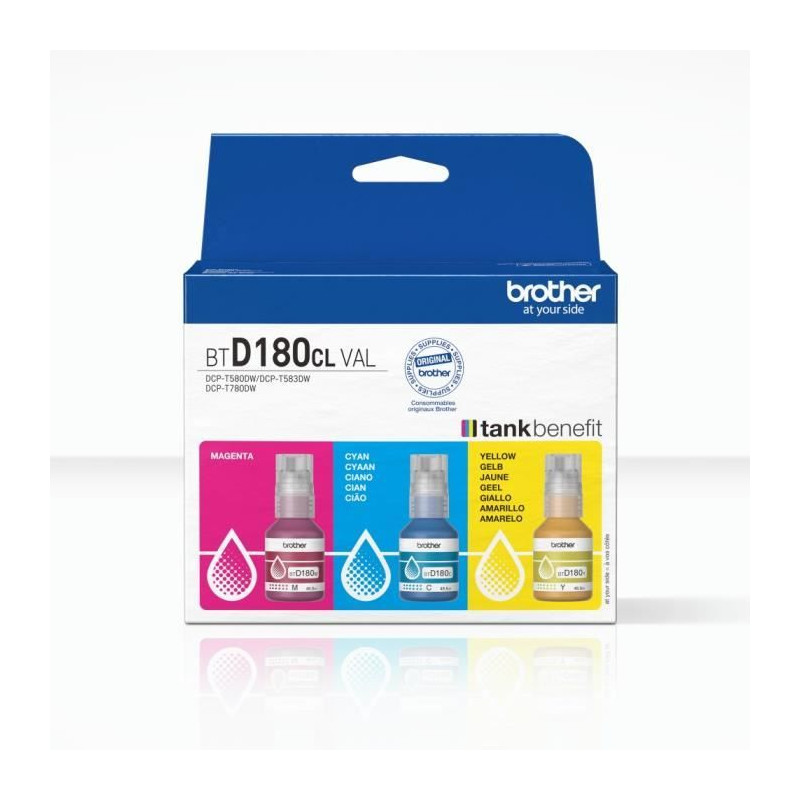 Bouteille d'encre - Brother - BTD180CLVAL - Cyan/Magenta/Jaune - 5000 pages - Pack de 3 - Standard