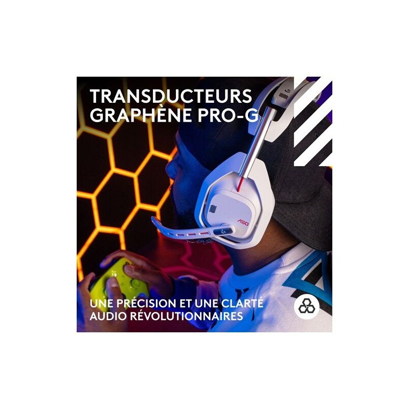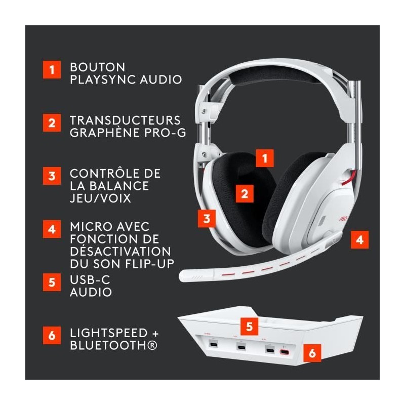 Casque gamer - Sans fil - Logitech G - Astro A50 Lightspeed Pro-G Graphene - Xbox, PS5, Switch, PC/Mac - Blanc