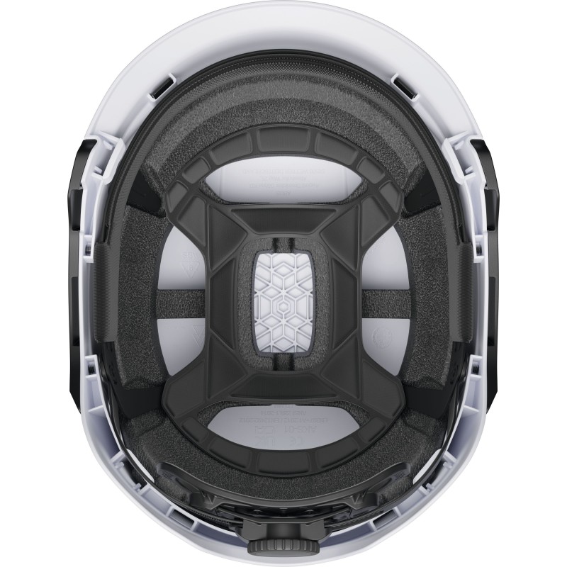 Le Spector est le modele Premium pour votre sécurité au travail. Que vous effectuiez des travaux de maintenance sur des éoliennes ou que vous conduisiez une pelleteuse lors de travaux de démolition, le Spector vous permet de redécouvrir la sécurité au travail. Le casque de protection est doté d'une coque robuste en ABS qui offre une résistance maximale aux chocs et une protection contre les chutes d'objets. Une coque intérieure en EPS amortit les chocs de maniere optimale et est extremement confortable sur la tete. Grâce a l'Active Padding et a un bandeau de transpiration respirant, le port du casque est confortable meme pendant de longues périodes. Une géométrie de casque innovante et au design optimisé avec une zone de nuque basse n'est pas seulement visible de l'extérieur, mais aussi perceptible de l'intérieur pour le porteur. Une technologie d'aération bien pensée, inspirée de notre compétence en matiere de casques dans le domaine du cyclisme, assure une excellente circulation de l'air. L'accumulation de chaleur est évitée, l'air chaud est évacué par des canaux dans la coque intérieure en EPS. Le systeme de réglage EasyFlex, qui permet d'ajuster le casque de protection de maniere multifonctionnelle et individuelle a 360°, est également innovant. Une molette permet un réglage précis de l'anneau de tete, tandis qu'un serre-nuque réglable avec un confortable appuie-tete arriere assure un ajustement parfait et sûr. Les clips a l'avant et a l'arriere du casque, qui permettent de fixer des lampes frontales et des lunettes intégrales, constituent un accroche-regard fonctionnel. Une fente latérale, l'Euroslot de 30 mm de large, permet de fixer une protection auditive. Il y a également une fente pour fixer les protections pour les yeux et le visage.