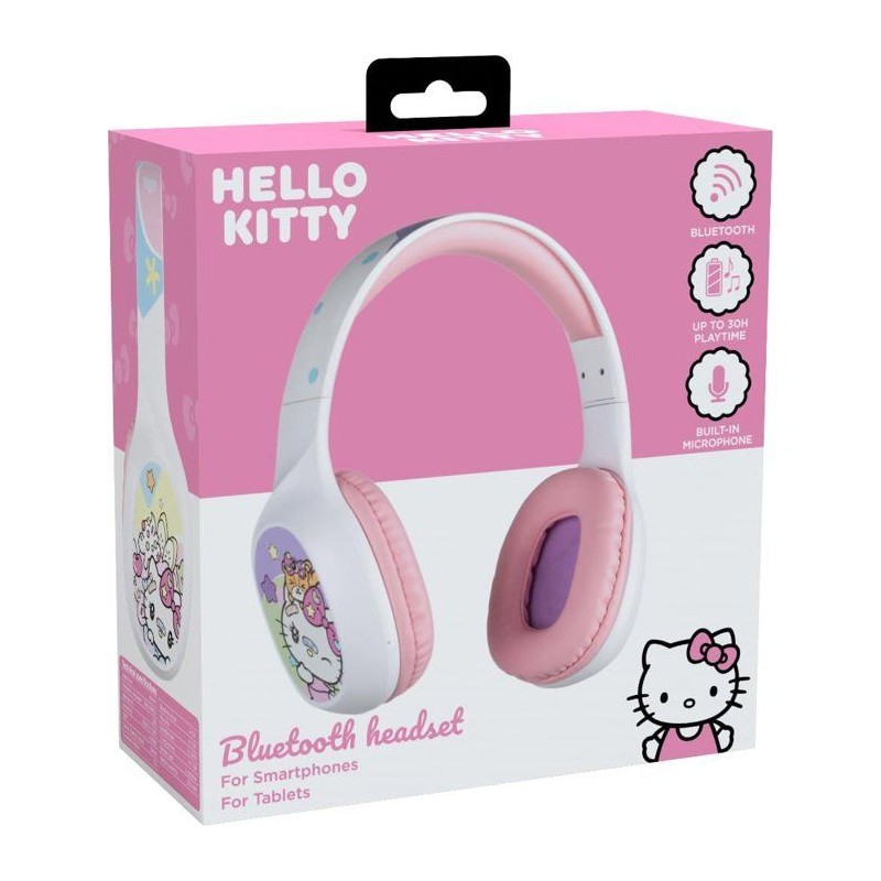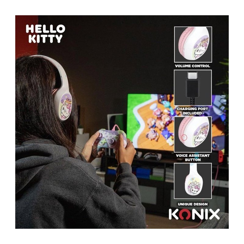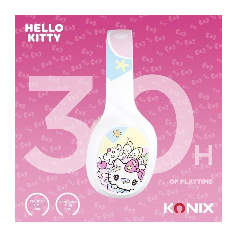 Casque audio - Sans fil - Konix - Hello Kitty - Bluetooth 5.3 PC, smartphones et tablettes - Autonomie 30 h - Blanc et rose