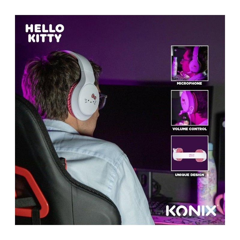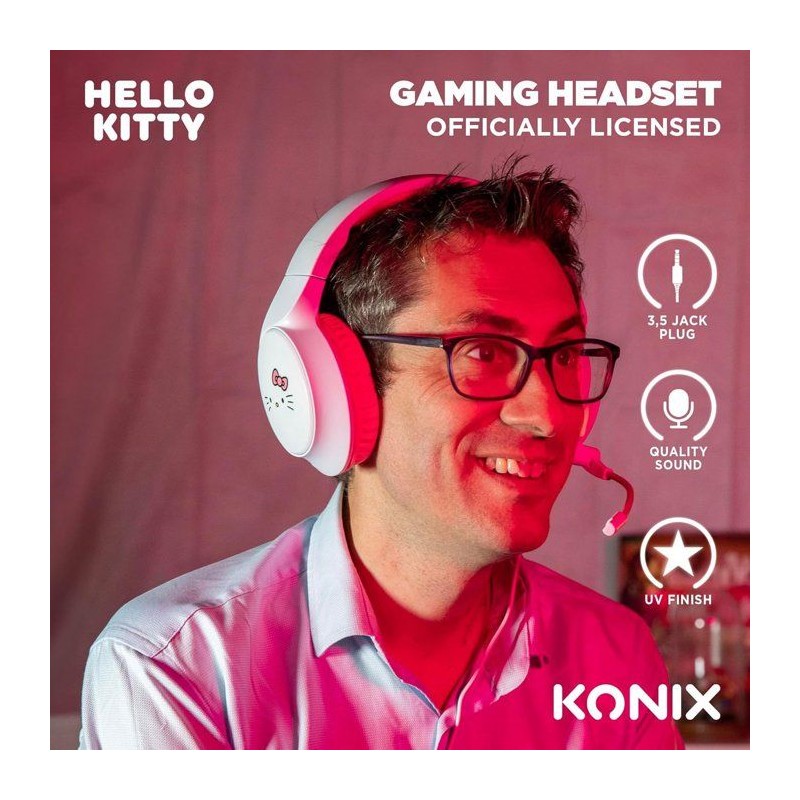 Casque gaming circum-aural - Filaire - Konix - PC, PS5, Switch 2 et Xbox - Hello Kitty - Microphone - Câble 1,5 m - Blanc et ro