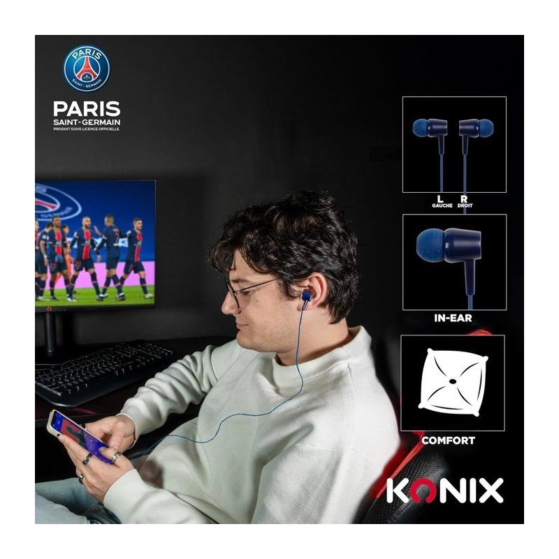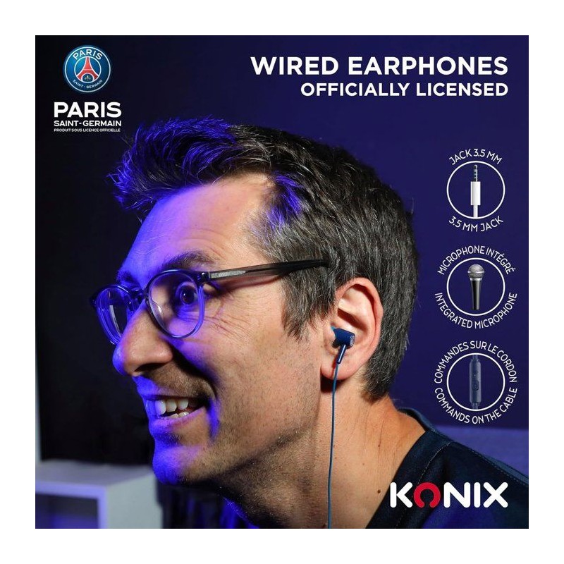 Écouteurs - Filaires - Konix - PSG - Haut-parleurs 10 mm - Microphone intégré - Connexion Jack 3,5 mm - Câble 1,4 m - Bleu