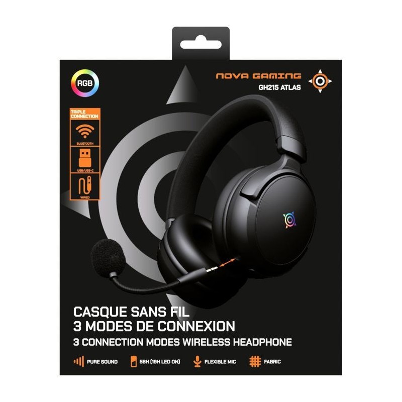 Casque gamer sans fil - NOVA GAMING - Atlas - Micro amovible - LED RGB - Noir