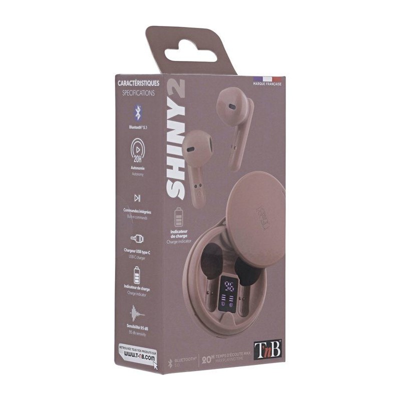 Ecouteurs sans fil TWS - T'nb - Shiny 2 - Boîtier de charge inclus - Bluetooth - Autonomie 20h - Contrôle tactile - Rose