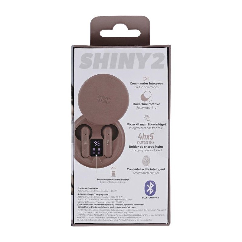 Les formes uniques des écouteurs SHINY 2 ont été pensées pour allier ergonomie et performances, et leur design épuré et ultra-compact a permis de rendre ces écouteurs a la fois légers et confortables ! En se basant sur les plus grandes tendances mondiales en termes de mode et de couleurs de l'année 2022, nous avons retenu quelques coloris pour habiller le boîtier et ainsi en faire un accessoire de mode a part entiere. De plus, grâce a la technologie Bluetooth 5.1, il est possible de profiter d'une autonomie prolongée d'environ 20h ainsi que d'une restitution sonore encore plus fidele. Le boîtier de recharge fourni vous permettra de transporter vos écouteurs partout tout en les rechargeant ! Grâce a son indicateur de batterie LED, vous serez toujours au courant de la batterie disponible dans votre boîtier de charge. Il vous indique également le niveau de charge des écouteurs. De plus, la fonction "touch control" vous permet de contrôler votre musique ou de répondre a vos appels simplement en touchant vos écouteurs ! Profitez également d'une recharge rapide en 1 heure avec le câble de charge type-C fourni. Avec la sensation de ne porter aucun écouteur, la gamme SHINY 2 vous offre une nouvelle façon de découvrir votre musique. Les écouteurs SHINY 2, c'est la technologie dernier cri a la pointe de la mode.
