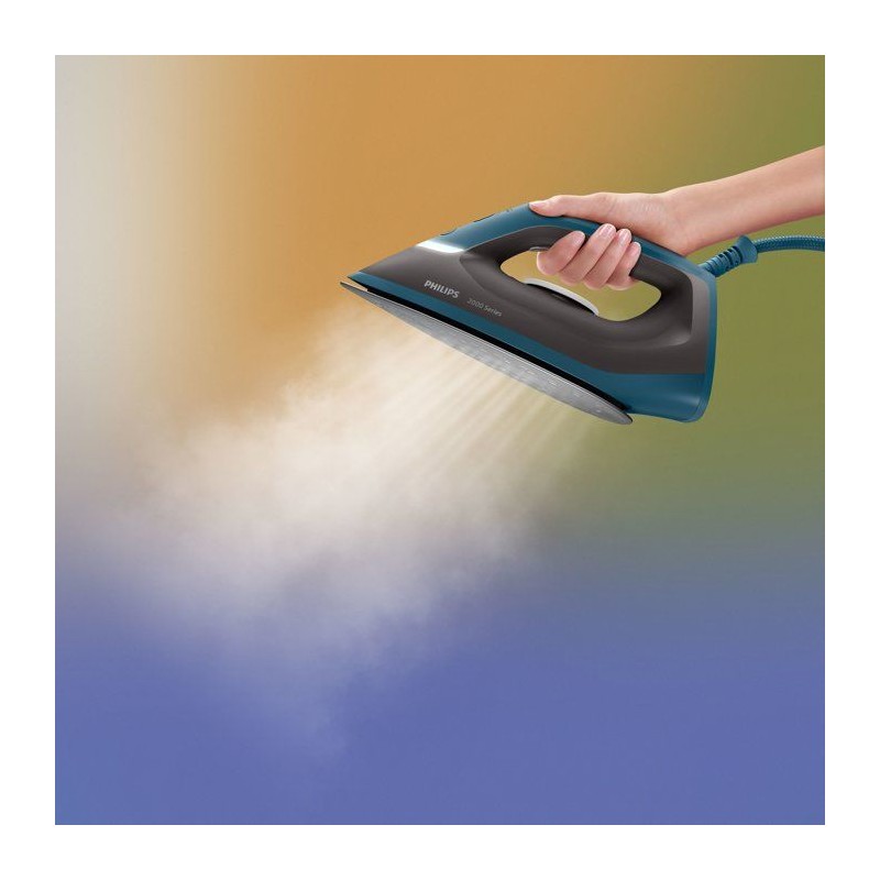 Repassez jusqu'a 25 % plus vite* Grâce a sa puissance de 2400 W, la PSG2001/80 de Philips offre une montée en température ultra-rapide et une vapeur continue jusqu'a 130 gr/min ainsi qu'une fonction pressing de 300 g. Elle permet de venir a bout des plis les plus tenaces en un seul passage ! Parmi les centrales vapeur, la PSG2001 est conçue pour ceux qui recherchent l'efficacité et la simplicité. En effet, elle allie puissance, performance et confort d'utilisation pour vous offrir un linge impeccable en un temps record ! Vous allez adorer son design compact et ses performances exceptionnelles, qui font de chaque séance de repassage un jeu d'enfant. Une semelle en céramique durable pour une glisse optimale Notre semelle spéciale en céramique glisse en douceur sur tous les tissus. Elle est antiadhésive, facile a nettoyer et résiste aux rayures. Une autonomie prolongée, plus d'1h d'utilisation continue Le réservoir transparent de 1,4 l offre plus d'une heure d'utilisation continue (en mode Éco). Vous voyez clairement la quantité d'eau restante, et pouvez le remplir facilement quand bon vous semble, grâce a sa grande ouverture de remplissage. Systeme Anti-Calcaire Smart Calc-Clean? Le systeme anti-calcaire intégré prolonge la durée de vie de votre centrale vapeur tout en maintenant une performance optimale. Facile a utiliser, il vous avertit lorsqu'un nettoyage est nécessaire. Arret automatique Le fer s'éteint automatiquement au bout de quelques minutes d'inutilisation pour économiser de l'énergie et pour plus de tranquillité d'esprit. Un produit facile d'utilisation & d'entretien Grâce a son design compact et pratique, elle est légere et le fer a repasser facile a manipuler pendant les séances de repassage. Grâce au verrouillage du fer, vous pouvez transporter votre centrale vapeur partout en toute sécurité. Un compartiment est dédié au rangement du cordon.