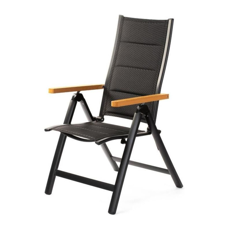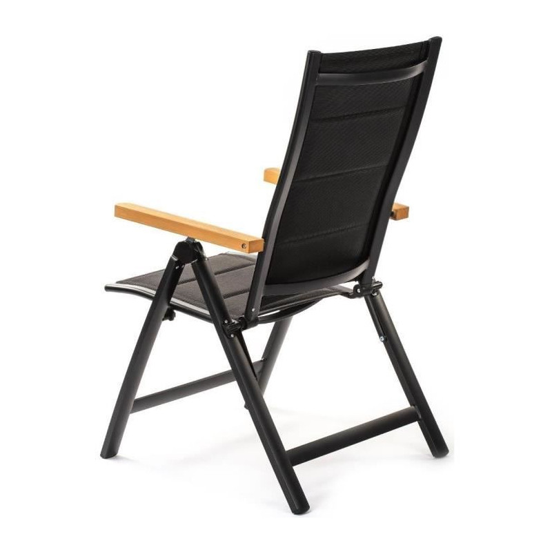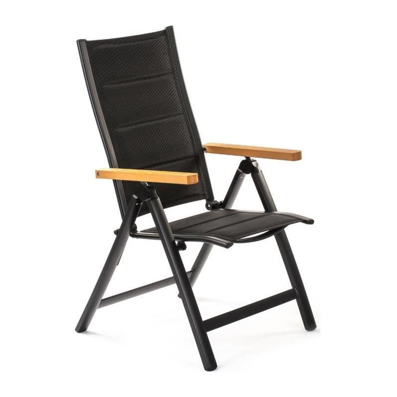 Chaise de jardin Fieldmann FDZN 5017 - Fauteuil réglable avec accoudoirs en polywood 7 positions de réglage de l'inclinaison du dossier (2 pieces) Dimensions : 105 x 55 x 45 cm Hauteur d'assise : 44 cm Rembourrage en tissu synthétique résistant avec rembourrage Matériau : aluminium Couleur du cadre : noir Capacité de charge jusqu'a 120 kg Convient pour une utilisation en extérieur et en intérieur Aucun entretien particulier requis
