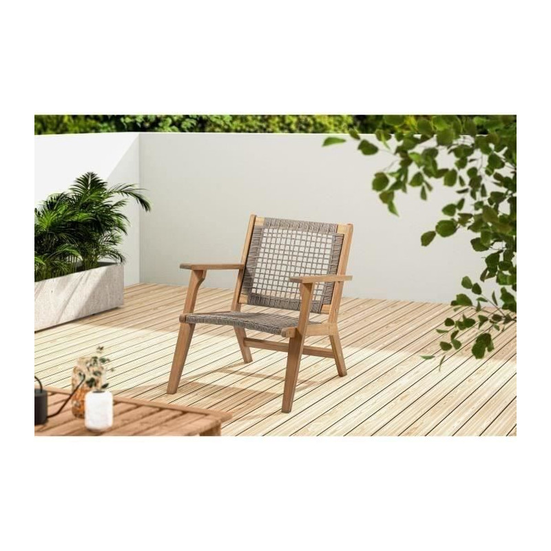 Fauteuil de jardin bas en bois d'Acacia FSC et en résine tressée - BORA - l60xP76xH73 cm