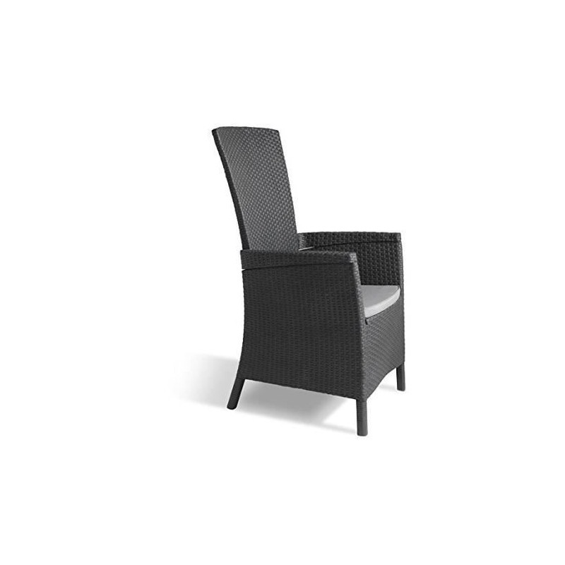 Fauteuil de jardin - KETER - Vermont - Résine imitation rotin tressé - Gris graphite - Dossier inclinable - 64 x 68 x 107 cm