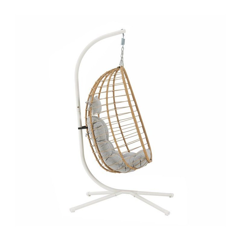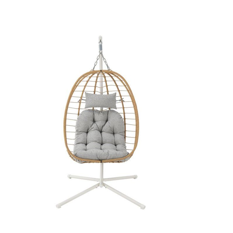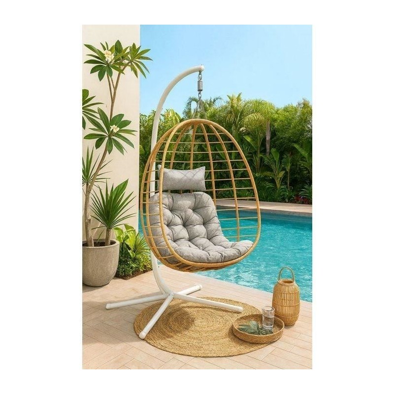 Fauteuil oeuf suspendu - PALAVA - Structure en acier - Tissage en rotin synthétique - D95 x L98 x H200 cm