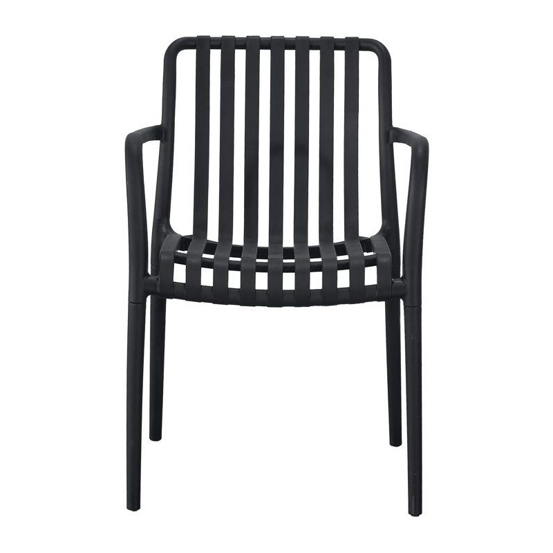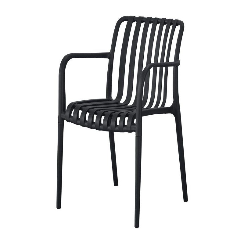 Lot de 4 fauteuils de jardin - SOLARIA - Empilables - Polypropylene renforcé - 55 x 58 x 81 cm - Noir