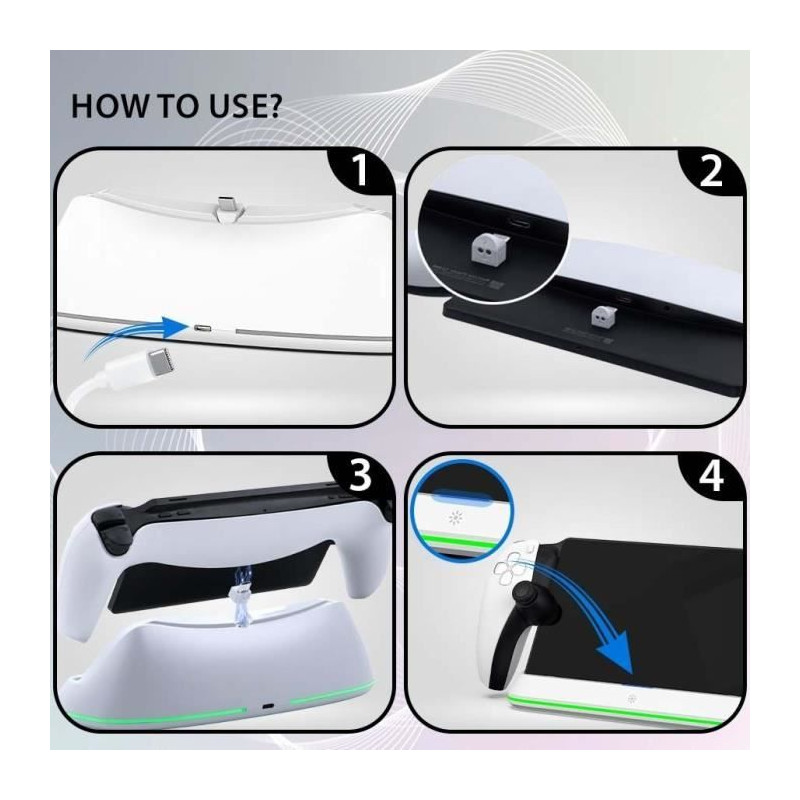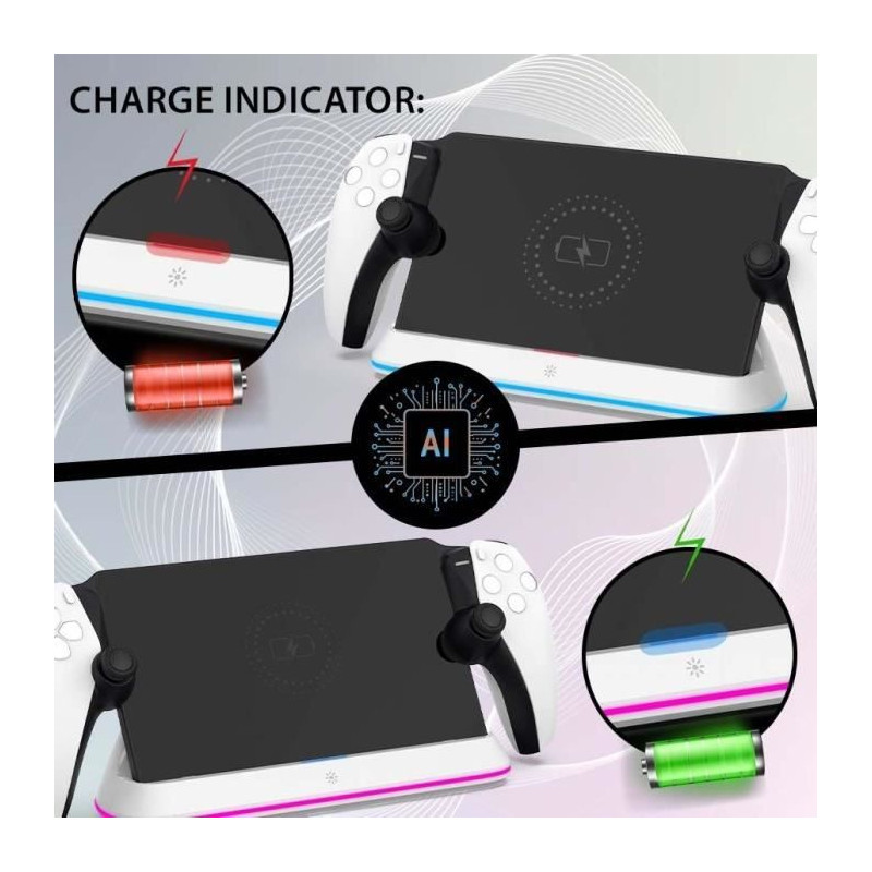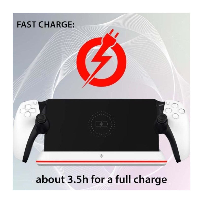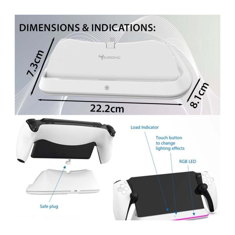 La station de recharge SUBSONIC pour PS Portal maintient votre console en toute sécurité. Avec un design élégant, elle propose 7 modes de LED RGB et se recharge rapidement en 3,5 heures via PS5 ou un chargeur mural. Son embout USB-C magnétique assure une connexion sécurisée et un témoin lumineux indique l'état de charge.