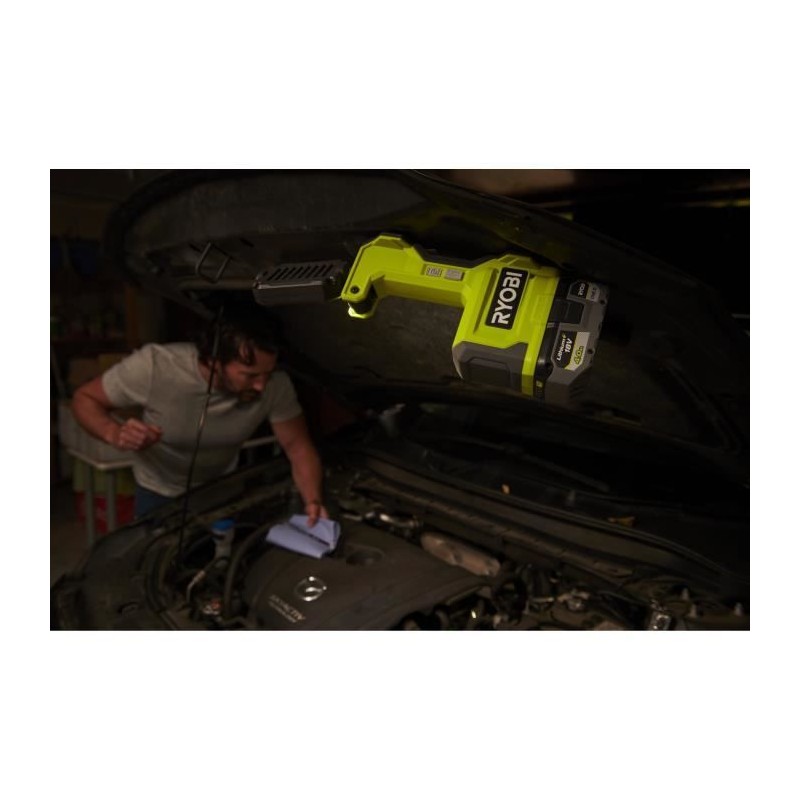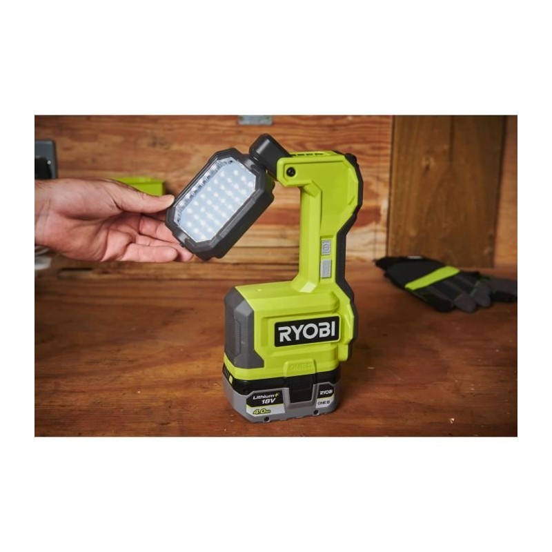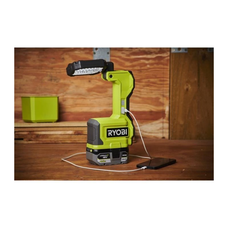 Lampe LED 18V - pivotable - 1 500 / 700 / 200 Lumens - Ports USB-A et USB-C - compatible RYOBI® LINK et base magnétique
