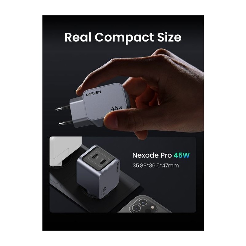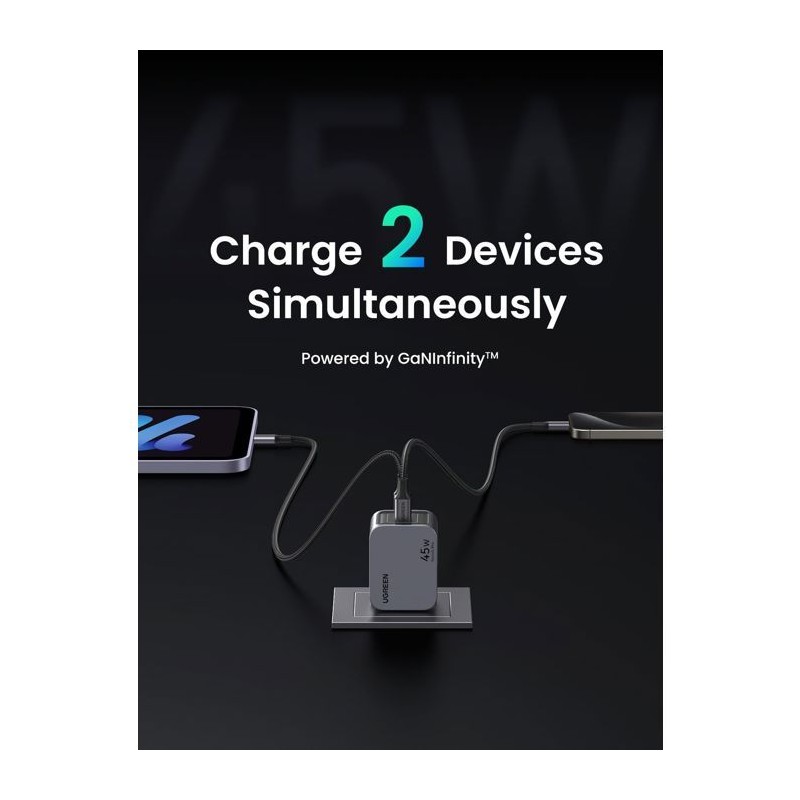 Chargeur secteur - UGREEN - GaN 2 Ports USB-C - 45W - Gris