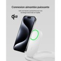 Socle Qi2 3-en-1 blanc : la solution chic pour recharger iPhone, AirPods et Apple Watch en toute simplicité.