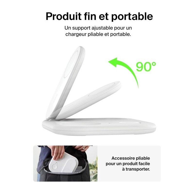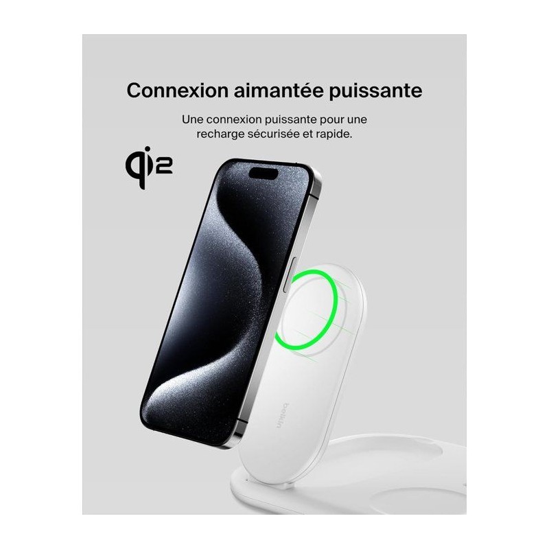 Socle de recharge - BELKIN - Qi2 - 3-en-1 - Blanc