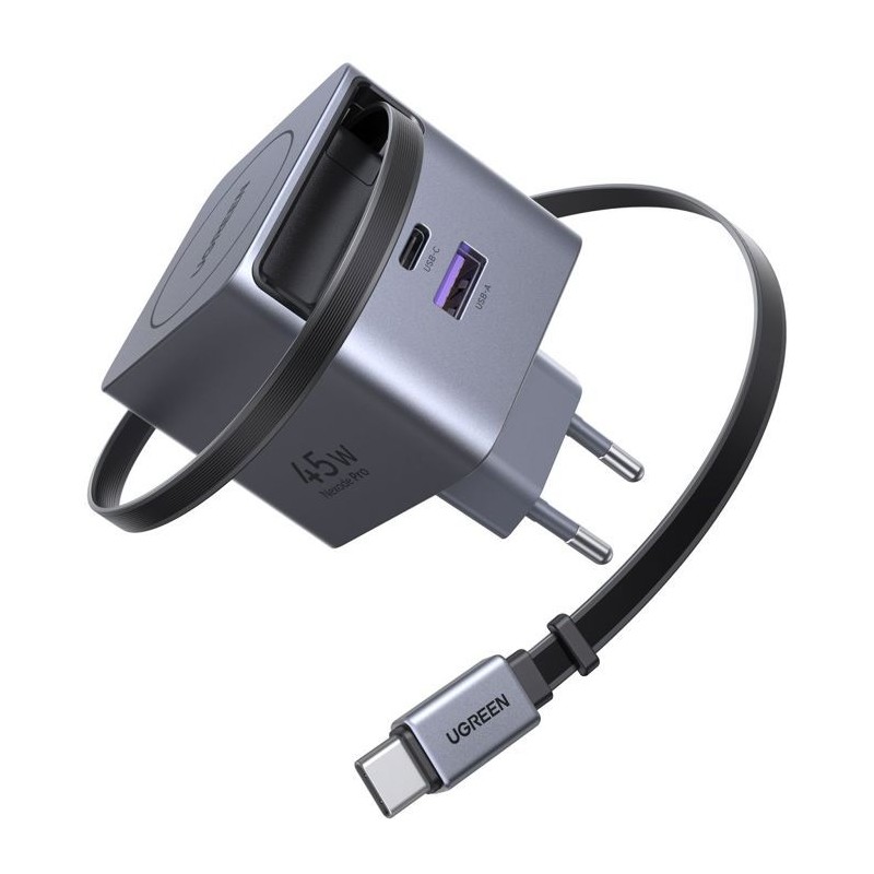 Chargeur secteur - UGREEN - 65W - USB-A et USB-C - Rétractable