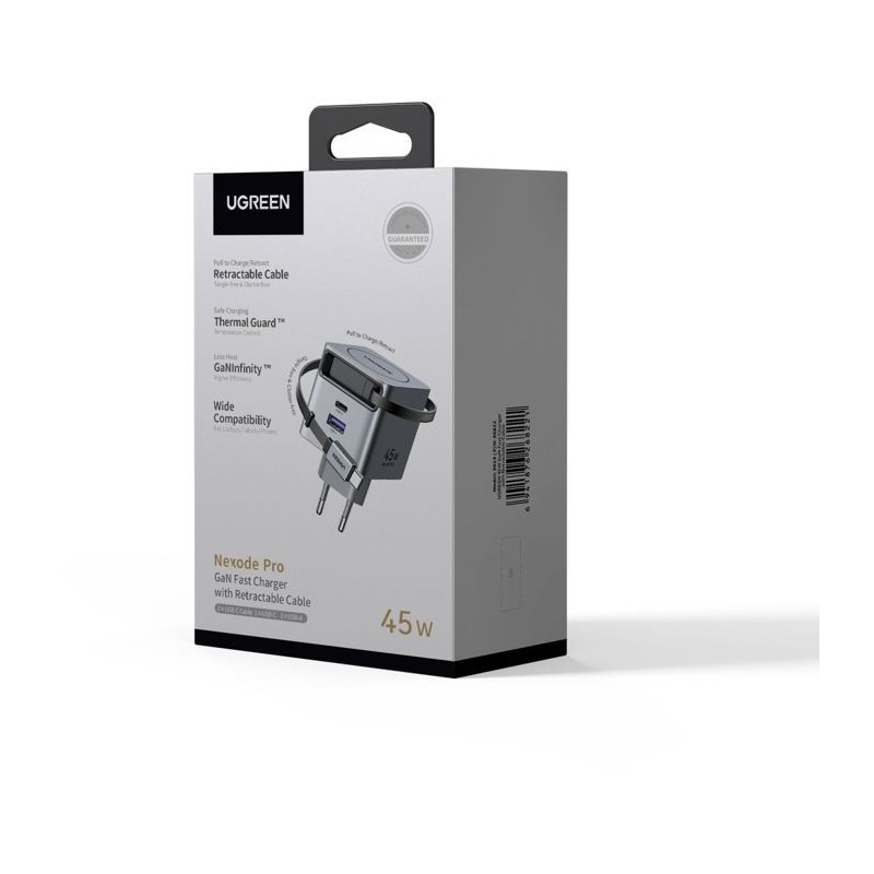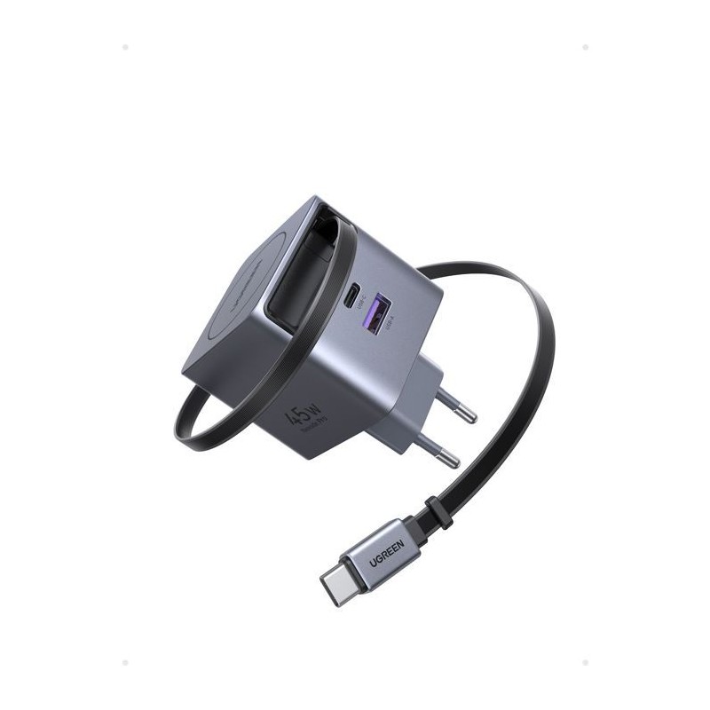 Le chargeur secteur UGREEN 65W avec ports USB-A et USB-C réunit puissance, polyvalence et praticité. Il permet de recharger simultanément plusieurs appareils, y compris smartphones, tablettes et ordinateurs portables compatibles USB-C PD. Le câble rétractable intégré réduit l'encombrement et facilite le transport, idéal pour les déplacements professionnels ou les voyages. Son design compact et élégant s'integre parfaitement a tout environnement, tandis que les protections contre la surcharge, les courts-circuits et la surchauffe assurent une utilisation sûre et fiable. Ce chargeur est la solution idéale pour une recharge rapide et pratique au quotidien.