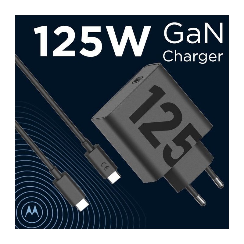 Chargeur - MOTOROLA - Moto charger - 125 W - Charge rapide - USB-C vers USB-C - Câble 1 m - Noir