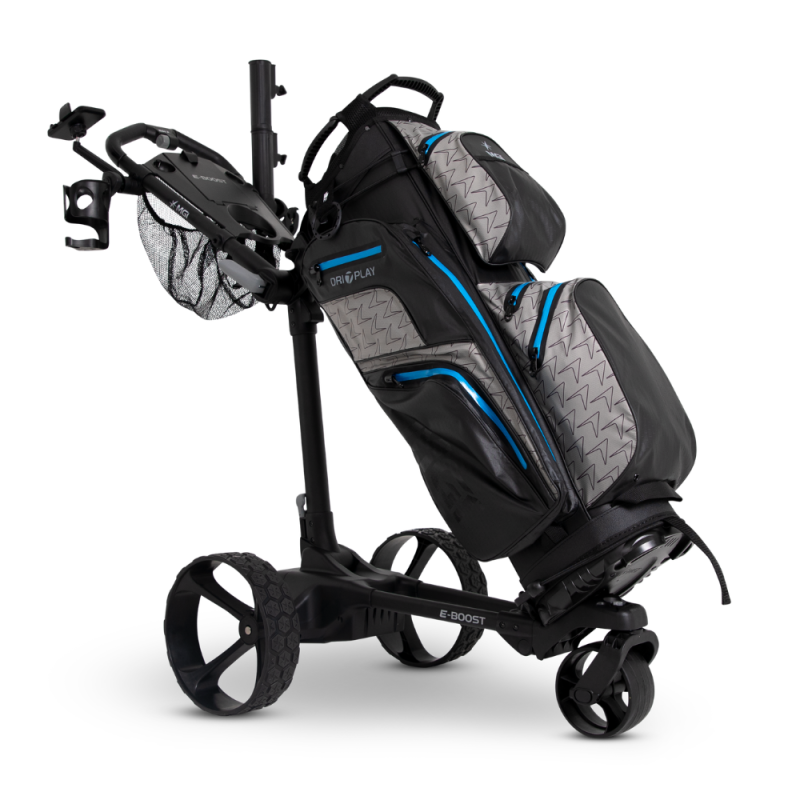 Le E-BOOST est un chariot de golf hybride nouvelle génération, combinant la simplicité et la légèreté d’un modèle manuel avec une assistance électrique intégrée activable à la demande.