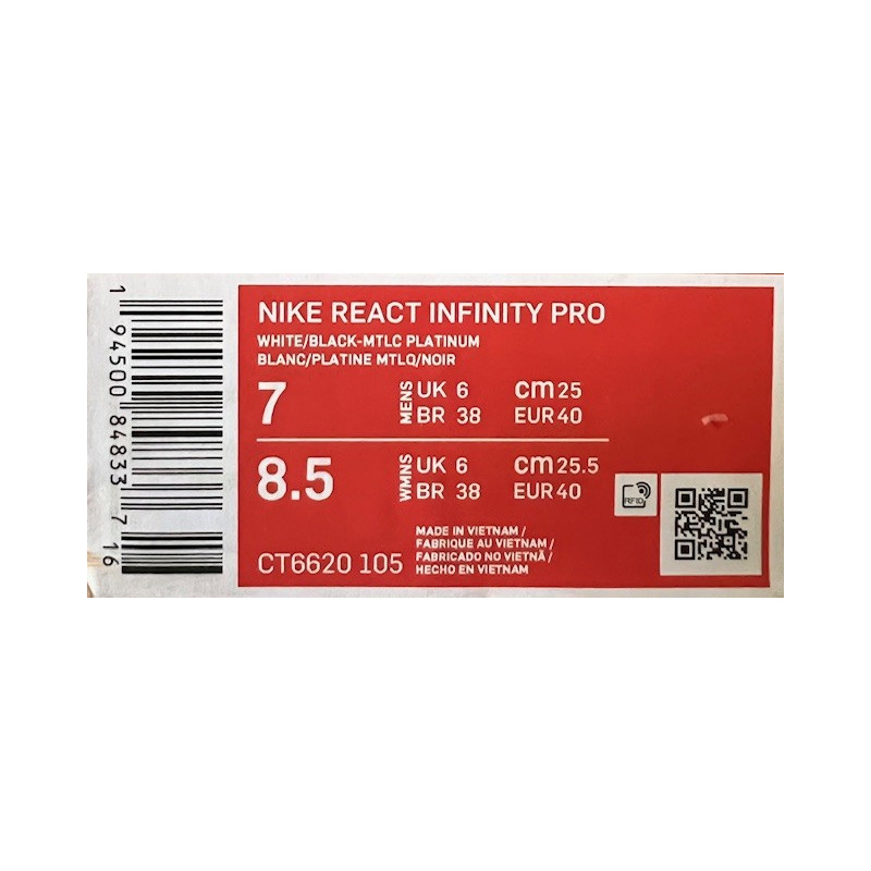 La chaussure Nike Réact Infinity Pro associe le confort incroyable et la polyvalence de l'adhérence intégrée à une empeigne en tissu élégante, respirante et facile à nettoyer.
