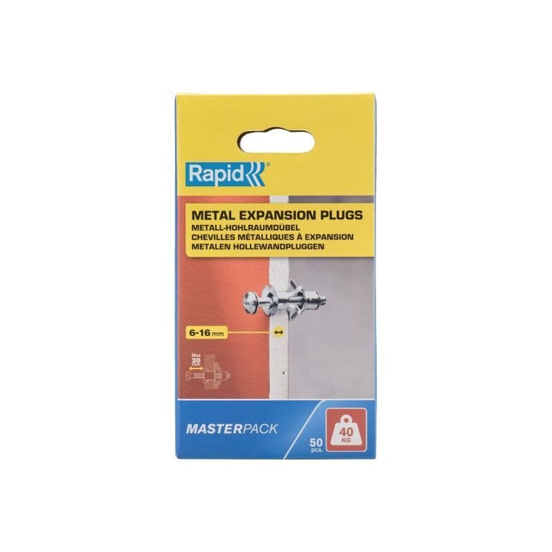 Chevilles a Expansion - RAPID - Métal pour Cloison Plâtre Ø11 - 6-16mm - Lot 50 - Charge Max 40 kg - 5001563