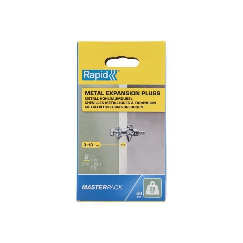 Chevilles a Expansion - RAPID - Métal pour Cloison Plâtre Ø8 - 3-13mm - Lot 50 - Charge Max 25 kg - 5001560