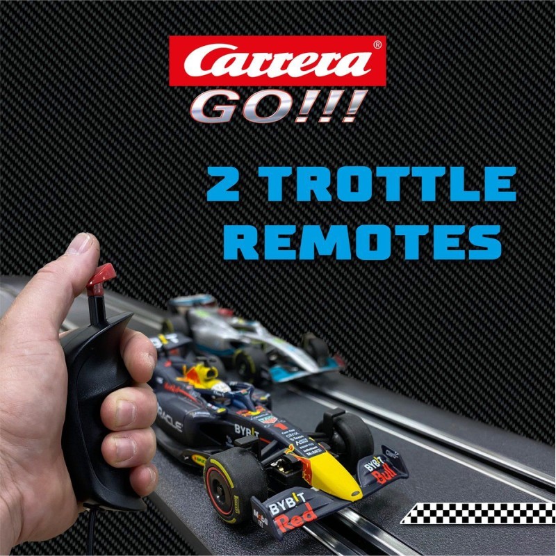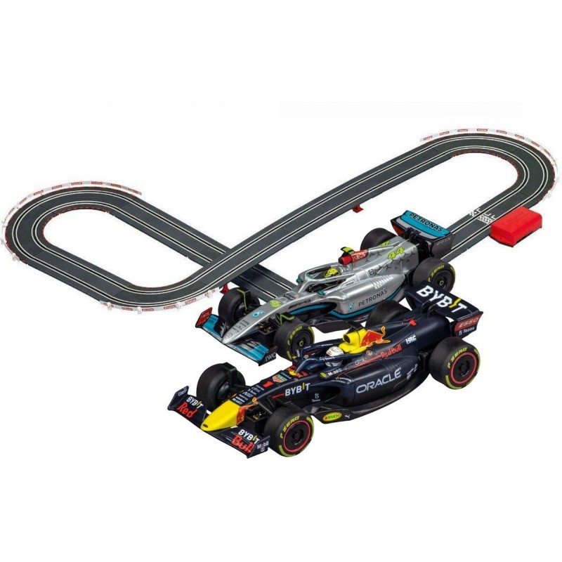 Vivez l'excitation de la course avec le circuit de course CARRERA BATTERY OPERATED - FORMULA CHAMPIONS, conçu pour les enfants des 6 ans. Avec ses 6,3 metres de piste, ce circuit met en scene les voitures Mercedes-AMG F1 W13 E Performance de Hamilton et Red Bull Racing RB18 de Verstappen. Fonctionnant a piles (4 piles de type D non fournies), ce circuit est facile a connecter et a utiliser. Il comprend un boîtier a piles, 2 manettes de vitesse, des lignes droites, des courbes et des supports. Dimensions : 54,0 x 36,0 x 7,0 cm. Poids : 5,3 lbs / 2,4 kg.
