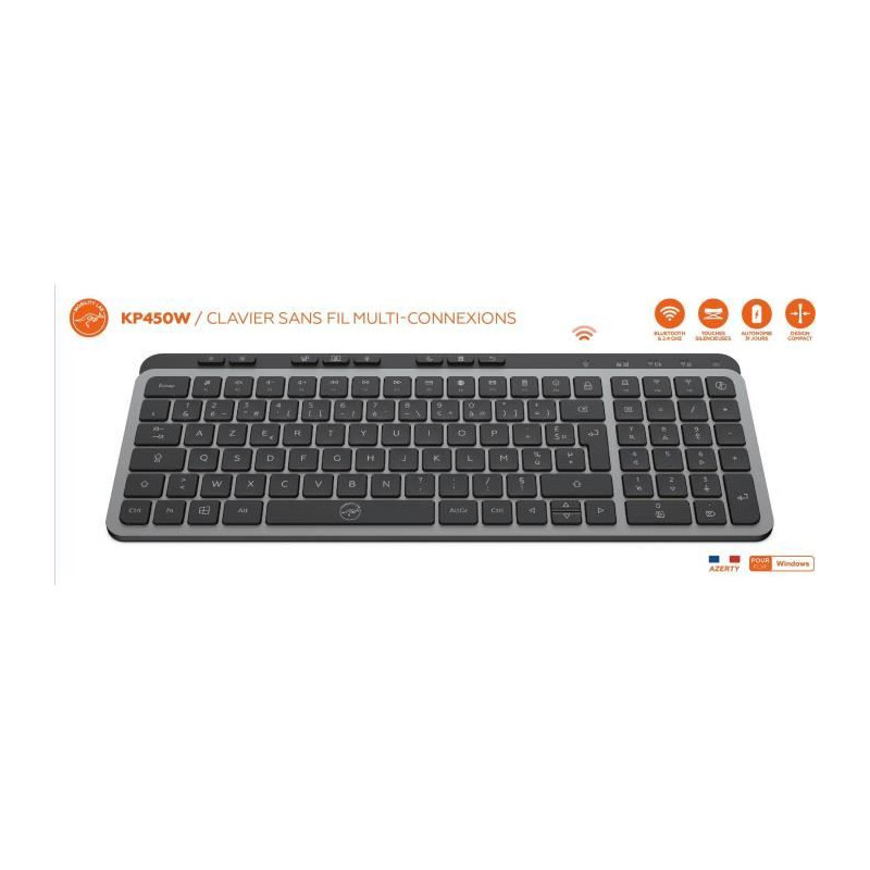 Clavier compact - Touches plates - MOBILITY LAB - KP450W - AZERTY - FR - Multi-connexions - Noir