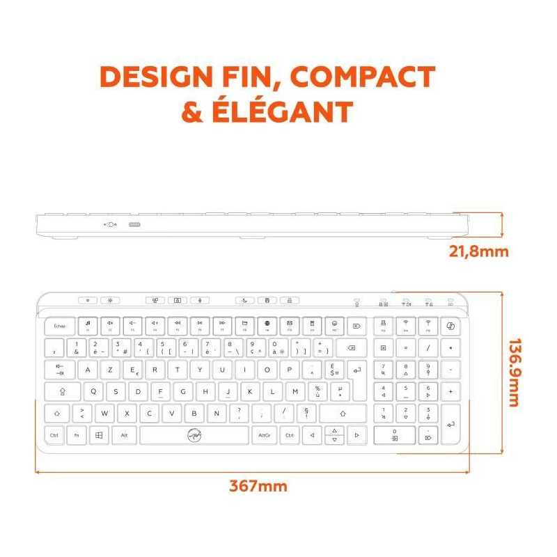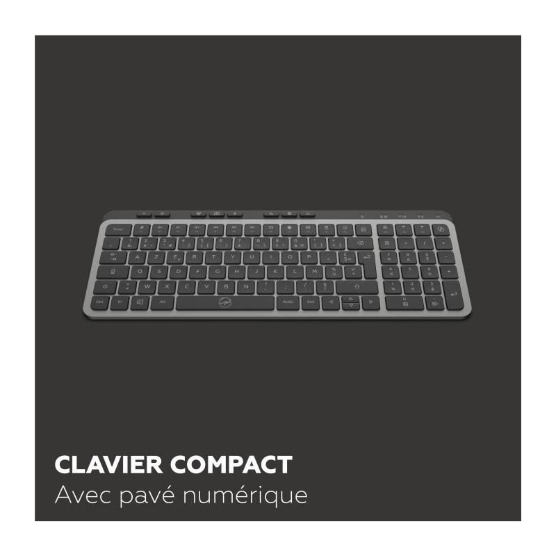 Découvrez le clavier sans fil KP450W de MOBILITY LAB, un modele compact et élégant avec touches plates. Basculez facilement entre 3 appareils grâce a sa connectivité multi-connexions. Profitez de 25 raccourcis multimédia et d'une recharge rapide via USB-C. Idéal pour un usage quotidien avec un design ergonomique et un mode économie d'énergie.