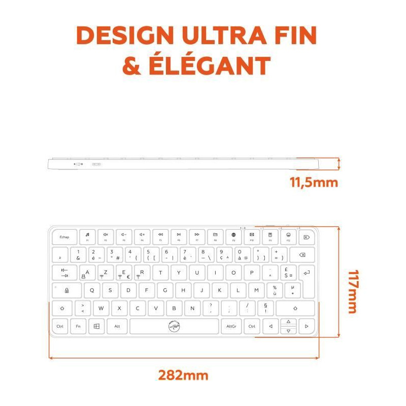 Le mini clavier sans fil KP430W de MOBILITY LAB offre un design élégant et ergonomique avec des touches plates. Il se connecte via 2,4 GHz et Bluetooth, permettant de basculer facilement entre 4 appareils. Profitez de 12 raccourcis multimédia et d'une recharge rapide via USB-C. Idéal pour Windows, il dispose d'un mode économie d'énergie apres 1 minute d'inactivité.