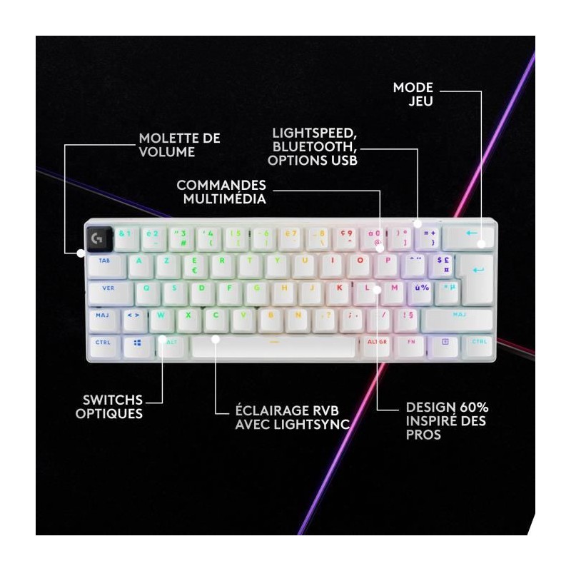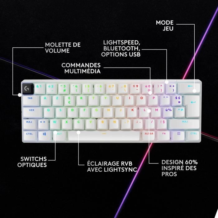 Clavier gamer - Sans fil - Logitech G - G Pro X 60 - Lightspeed - Blanc