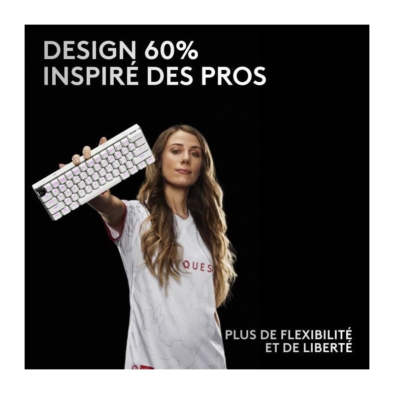 Conçu avec l'aide de centaines d'athletes esports parmi les meilleurs au monde, le clavier gaming sans fil PRO X 60 LIGHTSPEED est le premier modele Logitech G 60%. Prenez le contrôle de chaque touche dans G HUB grâce a KEYCONTROL et aux 5 couches personnalisables pour prendre véritablement les commandes. Connectez votre clavier mécanique sans fil en toute simplicité via Bluetooth ou USB, ou profitez de la rapidité et de la fiabilité de la technologie sans fil LIGHTSPEED. Gagnez avec style grâce a la fonction RVB personnalisable LIGHTSYNC et aux 2 coloris au choix pour le clavier : noir ou blanc. 100% contrôle, 100% compact, 0% compromis.
