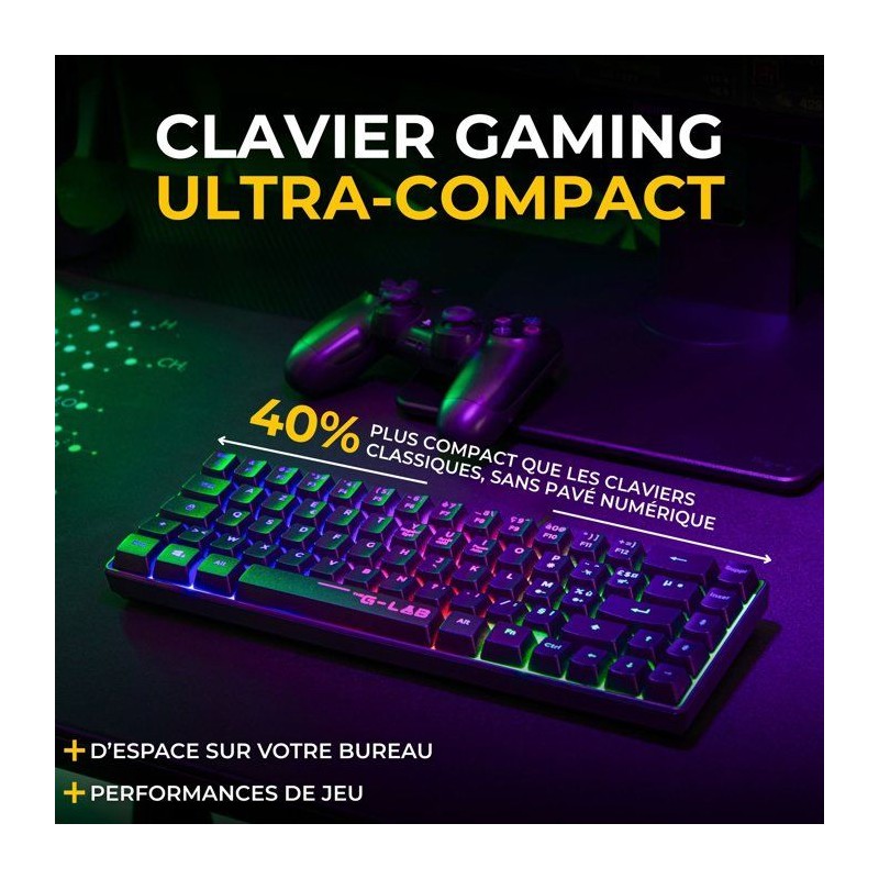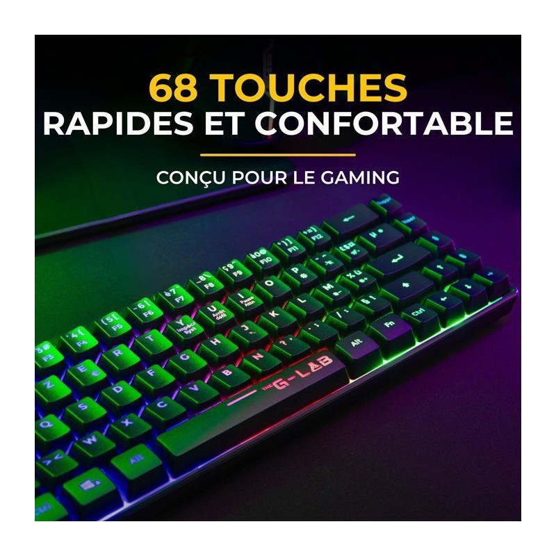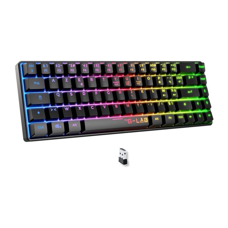 Clavier Gamer sans fil - Membrane - THE G-LAB - KEYZ HYDROGEN - Format 60% - AZERTY - Rétroéclairé - Noir