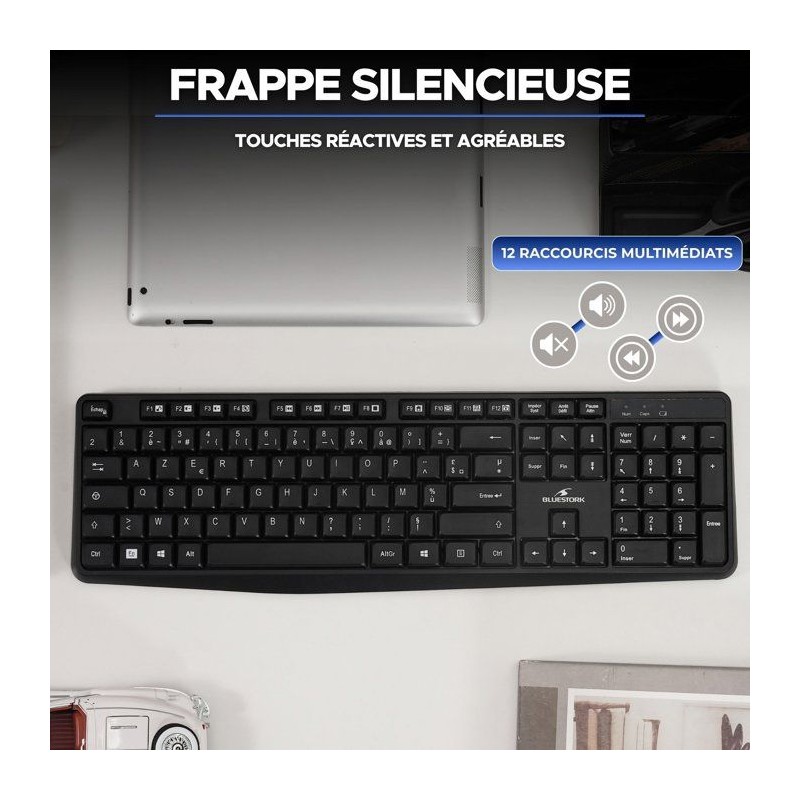 Clavier filaire - 15 touches de raccourcis multimédias - BLUESTORK - Media Office - KB-MEDIA-OFFW/FR - AZERTY