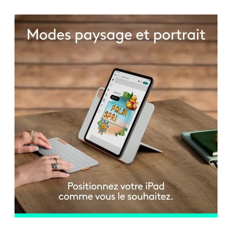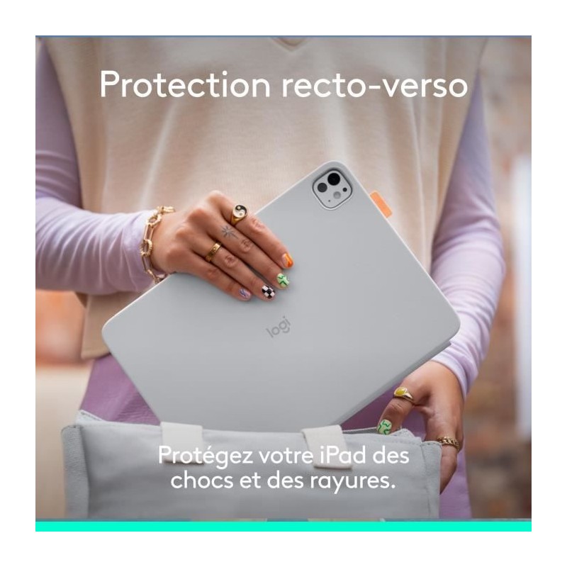 Faites naître la magie en un geste avec Flip Folio, l'étui pour iPad doté d'un clavier détachable et d'une protection a l'avant et a l'arriere. Vous pouvez taper n'importe où et comme vous en avez envie sur le clavier de taille standard, ou le ranger pour vous détendre. Profitez de la commodité de la fonctionnalité multidispositifs en connectant jusqu'a 3 dispositifs Bluetooth a la fois. Les touches Easy-Switch vous permettent de basculer facilement d'un dispositif a l'autre. Trouvez le bon angle de vision avec un support réglable et positionnez votre iPad en mode portrait ou paysage selon ce que vous préférez. Une rangée complete de touches de raccourcis iOS facilite l'acces rapide aux fonctions familieres, et la conception de l'étui permet a Apple Pencil de se fixer magnétiquement directement a l'iPad afin que vous puissiez garder vos accessoires a portée de main. Quatre piles bouton remplaçables garantissent jusqu'a 2 ans d'utilisation, pour que vous ne soyez jamais a court de batterie en déplacement. Flip Folio est compatible avec l'iPad Pro 11 pouces (M4 et M5), l'iPad Air 11 pouces (M2 et M3) et l'iPad Air (5e génération).