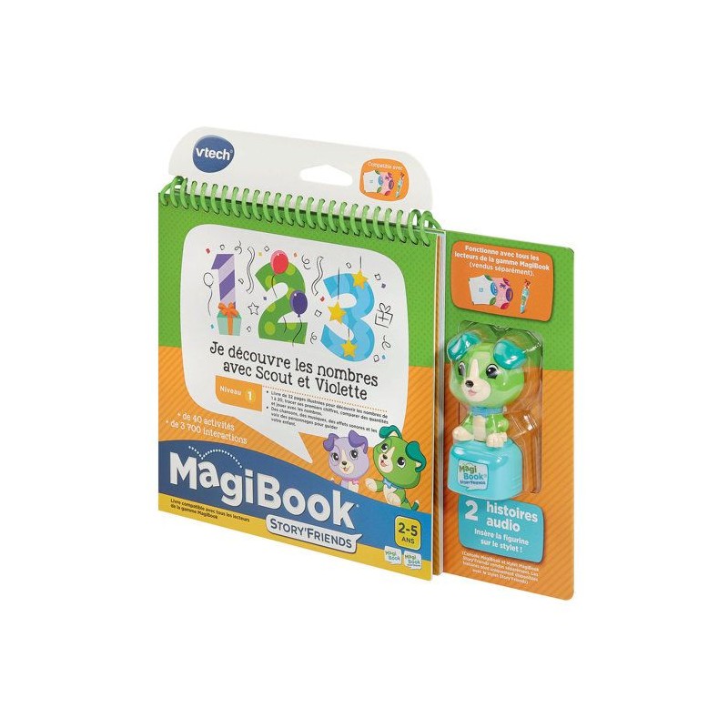 Magibook Story'Friends - Livre éducatif « J'apprends les nombres avec Scout et Violette » + figurine - 2 - 5 ans Livre de 32 pages illustrées pour découvrir les nombres avec tes héros Scout et Violette. Apprentissages : - découverte des nombres de 1 a 20 - tracé ses premiers chiffres - observation et logique - compa