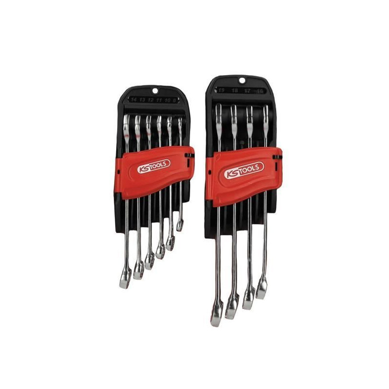 Jeu de 10 clés mixtes métriques - KS TOOLS - 922.0050 - Sur support - 8 a 19 mm - Angle de fourche et oeil incliné a 15°