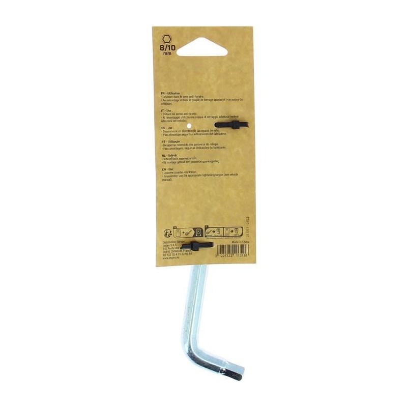 Clé de vidange hexagonale 8-10 mm. Permet de dévisser les bouchons de carter d'huile pour effectuer la vidange du véhicule. Dévisser le bouchon dans le sens anti-horaire. Au remontage, utiliser le couple de serrage approprié (voir notice du véhicule).