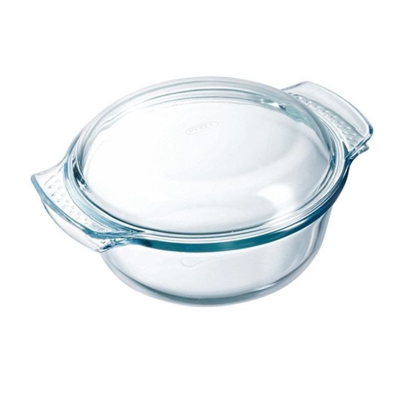 Cocotte ronde 32 * 27 cm Pyrex Classic - 3,5+1,4 l Les avantages du verre borosilicate Pyrex : -Supporte des températures extremes de -40°C a +300°C -Résistant aux chocs thermiques jusqu'a 220°C : peut passer du congélateur a -20°C au four a 240°C -Matériau sain et hygiénique qui ne retient ni les tâches ni les odeurs
