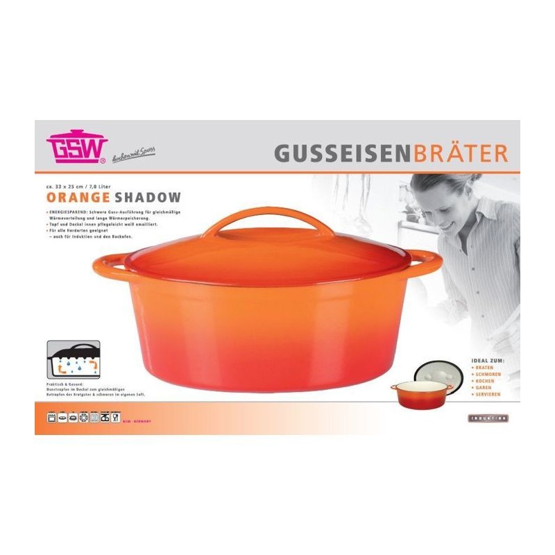 Cocotte en fonte massve - GSW - 33 x 25 cm- Orange - Ovale - Induction