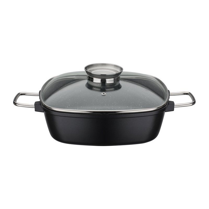 Cocotte carrée - Tous feux dont induction - GSW - GOURMET GRANIT - 28 x 28 cm - Fonte d'aluminium massive - Sans PFAS - Noir