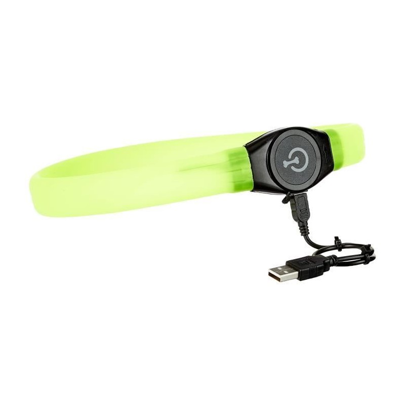 Spécial pour races a poils longs - 2 vitesses de clignotement au choix ou allumage permanent - Batterie rechargeable par câble USB - Taille ajustable, tour de cou max. 65 cm - Câble USB inclus - Imperméable - Visibilité: max. 500 m
