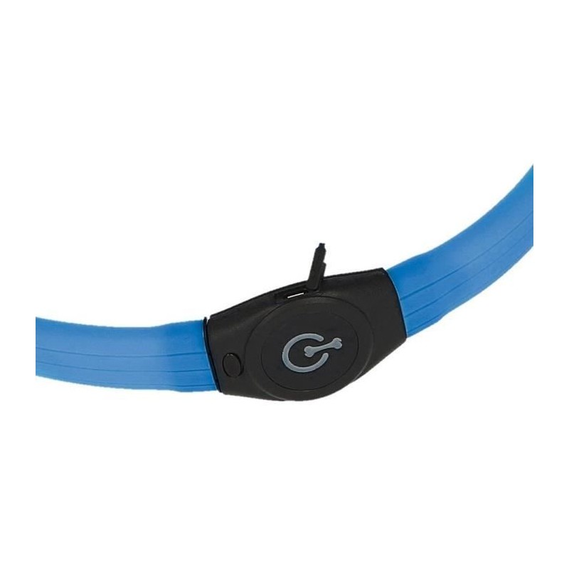 Spécial pour races a poils longs - 2 vitesses de clignotement au choix ou allumage permanent - Batterie rechargeable par câble USB - Taille ajustable, tour de cou max. 65 cm - Câble USB inclus - Imperméable - Visibilité: max. 500 m