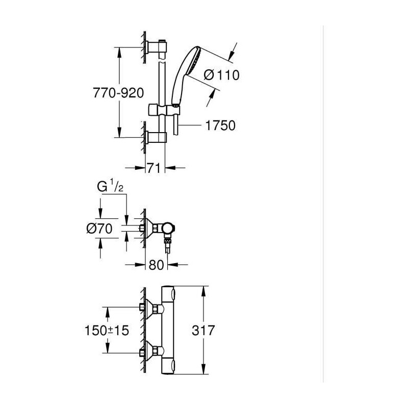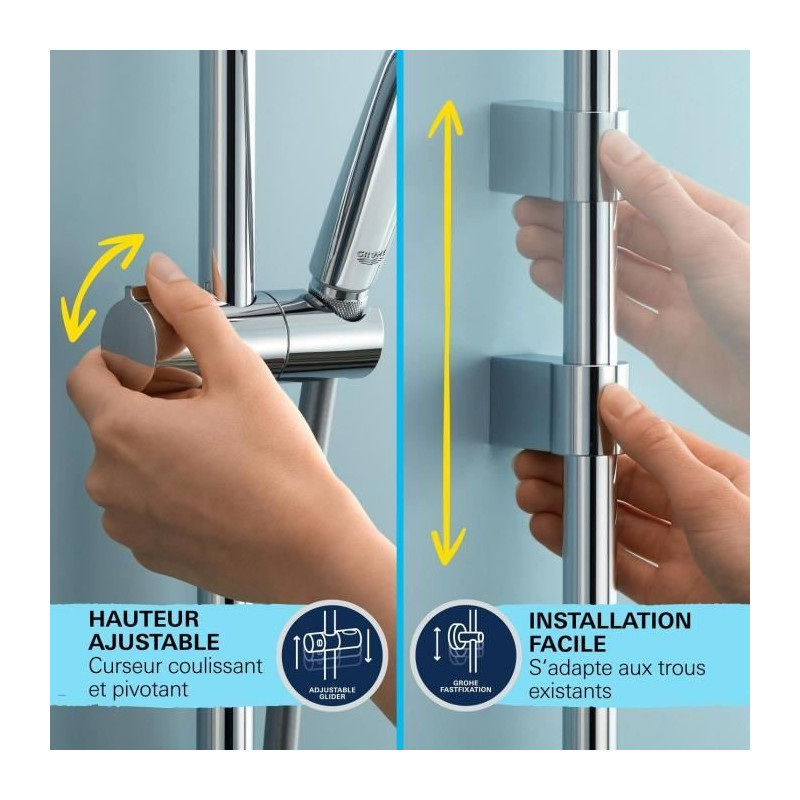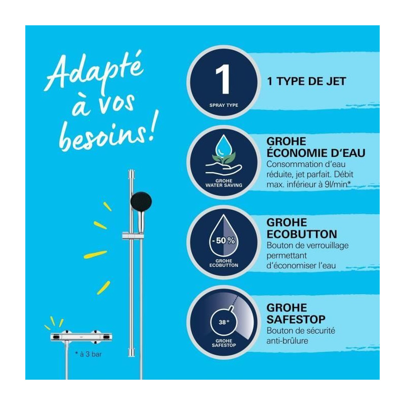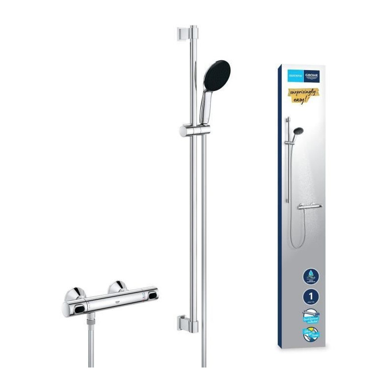 Ensemble de douche - 1 jet - Mitigeur thermostatique - GROHE - 34805001 - Gris