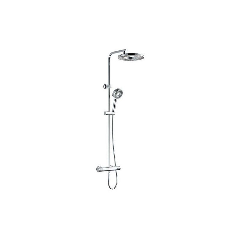 Colonne de douche avec mitigeur thermostatique - Edouard Rousseau - Hoop - Chrome - Douche de tete ronde - Douchette a main