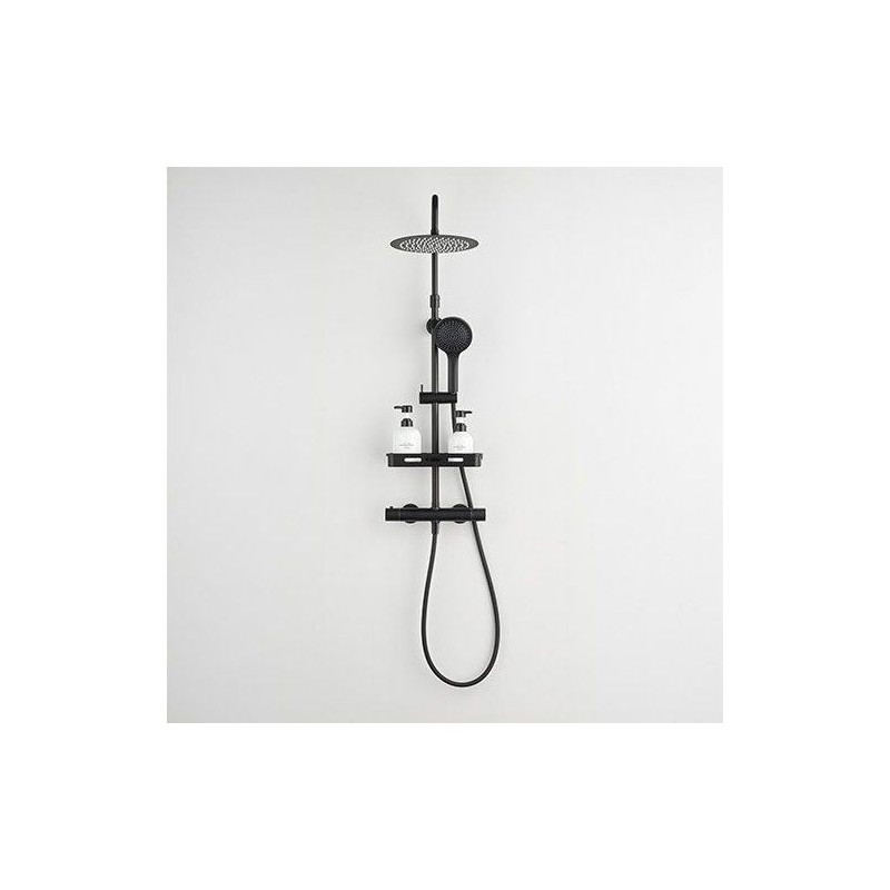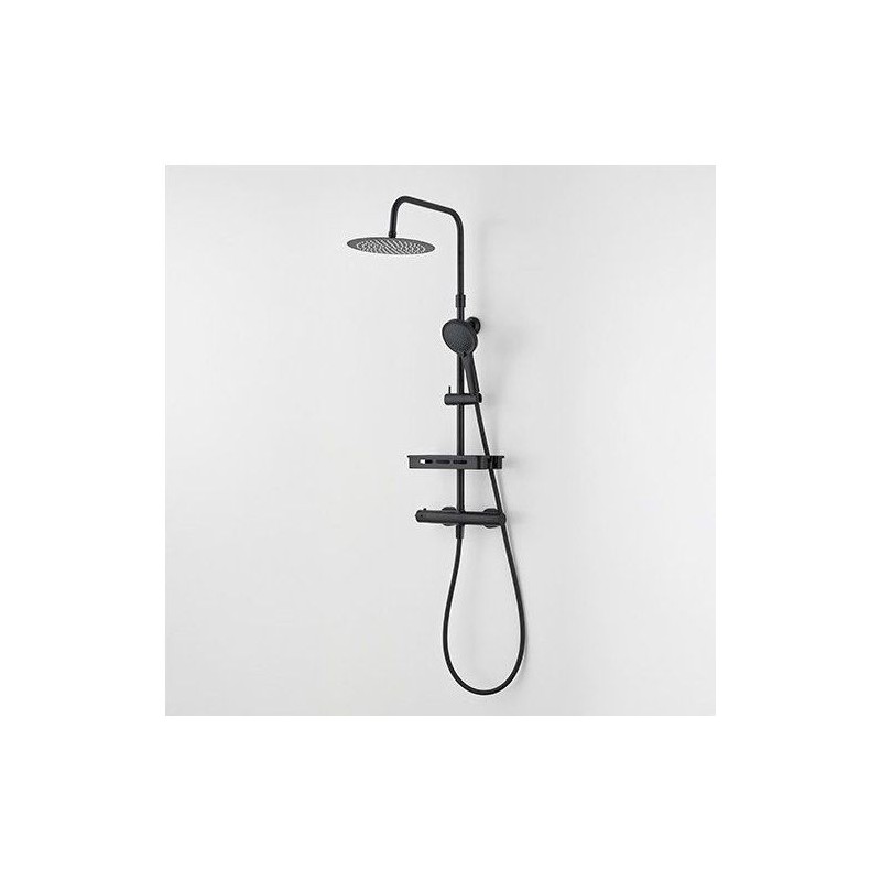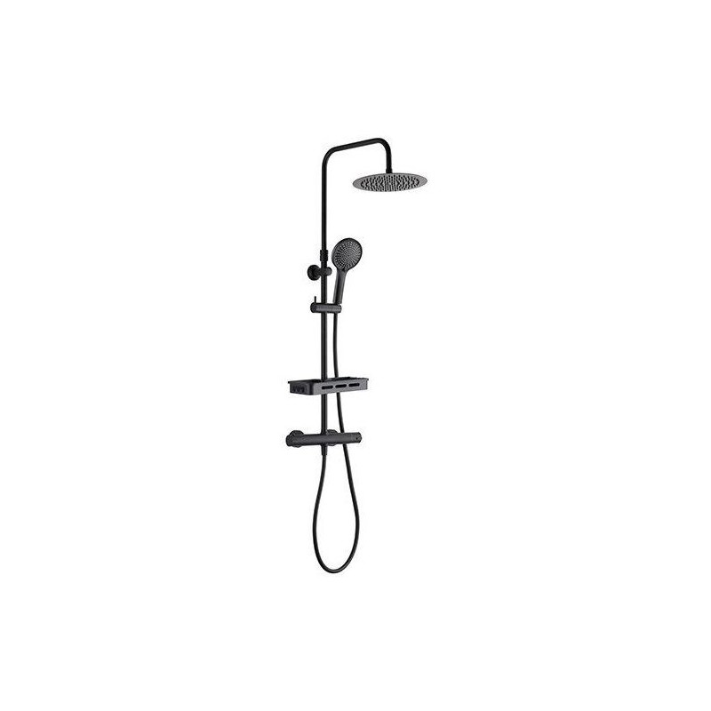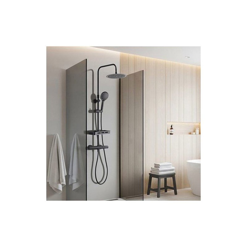 Colonne de douche avec mitigeur thermostatique - Edouard Rousseau - Ars Tab - Noir - Douche de tete ronde - Douchette a main