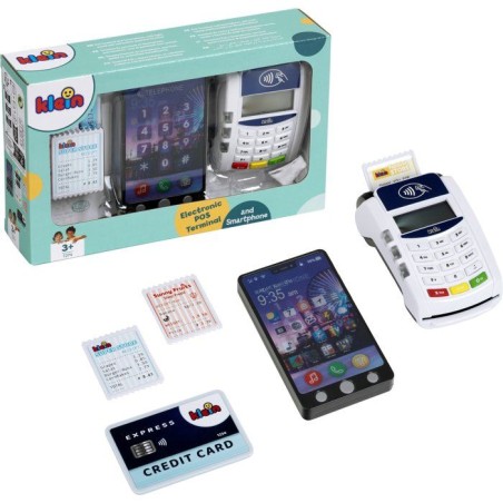 Offrez aux enfants une expérience de jeu unique et amusante avec ce terminal de paiement et son smartphone. Avec son design et ses fonctions réalistes, ce set permet aux enfants de jouer a faire les courses comme les grands. Le terminal de paiement permet de regler ses achats par carte de crédit en l'insérant dans la fente ou en sans contact ou meme avec son smartphone ! Le smartphone a 3 boutons qui permettent de déclencher musique, sonnerie et appareil photo et a meme un flash a l'arriere. Le set comprend un terminal de paiement, un smartphone avec fonctions, 3 tickets de caisse et une carte de crédit ! Convient aux enfants a partir de 3 ans. Piles non incluses : 5 x R03-AAA.