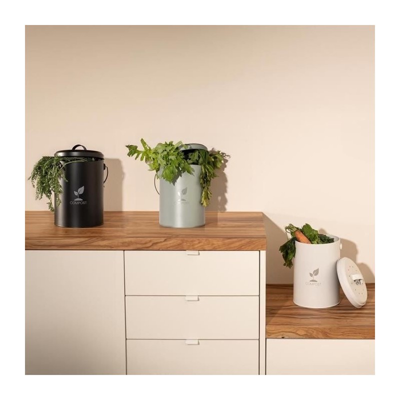 Seau a compost de cuisine - LIVOO - MES154C - 6 L - Ø18 cm - Hauteur 23 cm - Corps et couvercle en métal - Filtre charbon